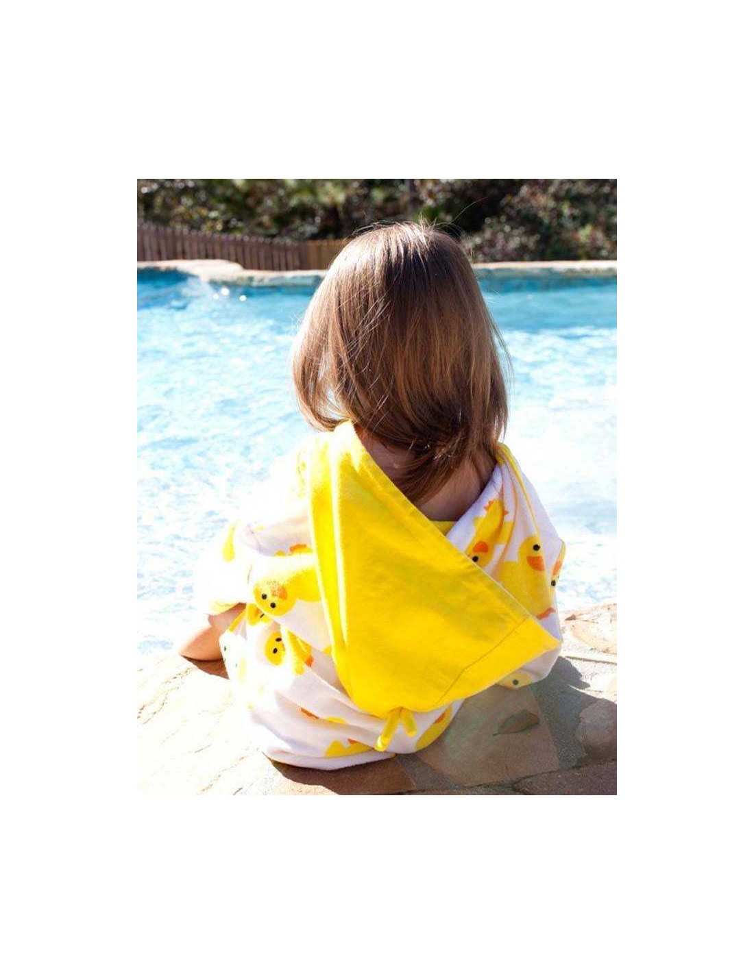 Original poncho albornoz con protección solar UPF50 con estampado de pato combinable con bañador y gorro a juego.