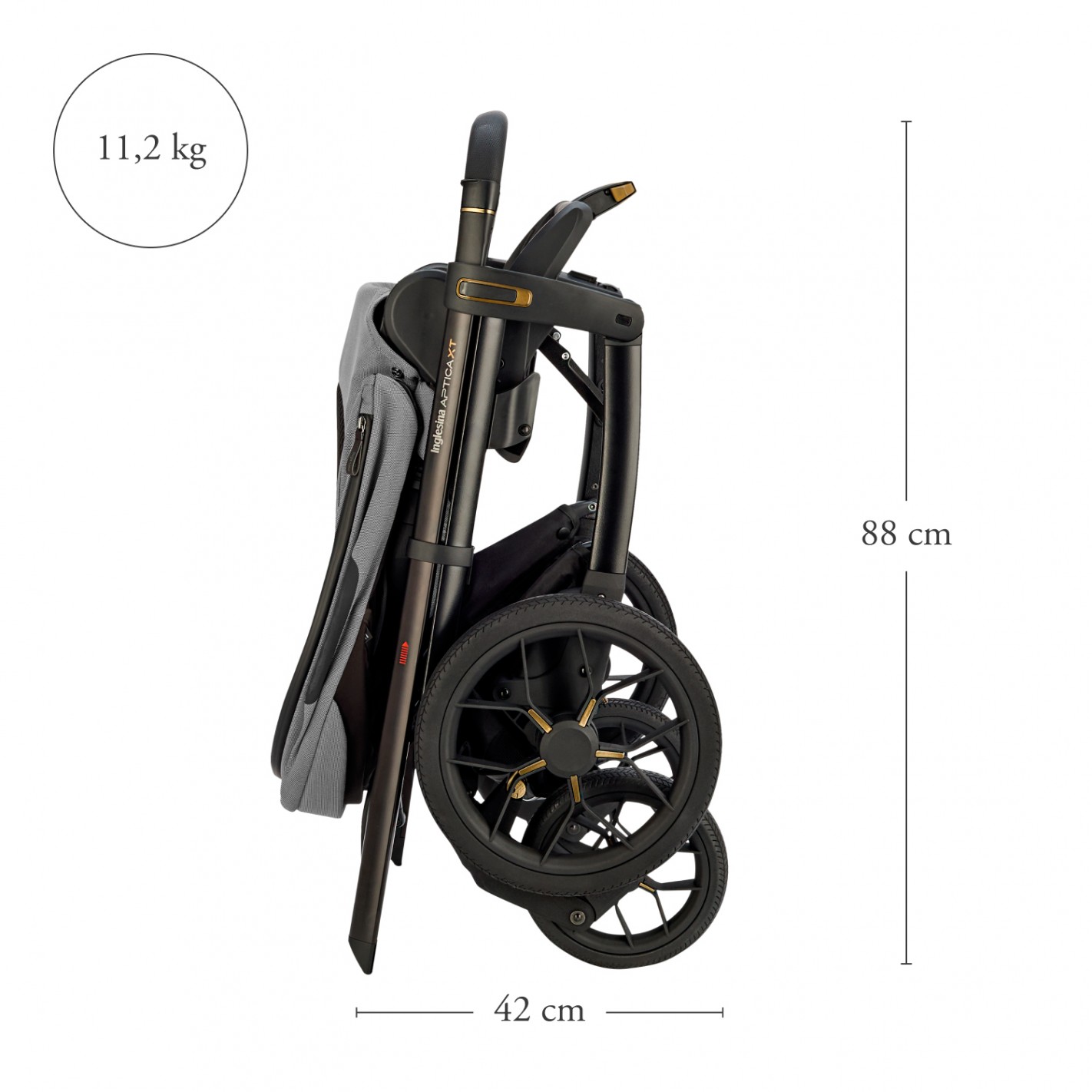 - Dimensiones del cochecito plegado (al mundo): 53 x 90 x 44,5 cm (ancho x alto x fondo)