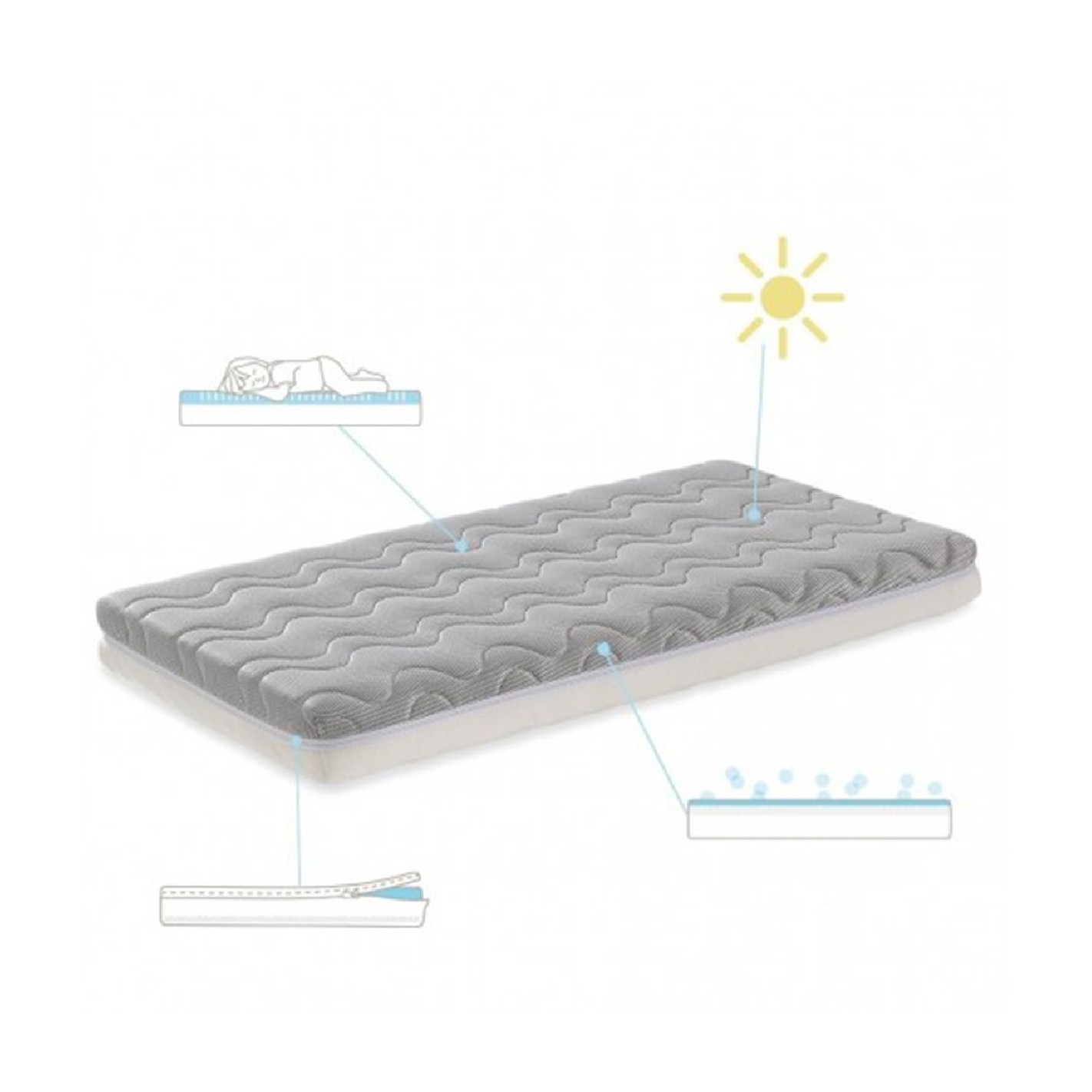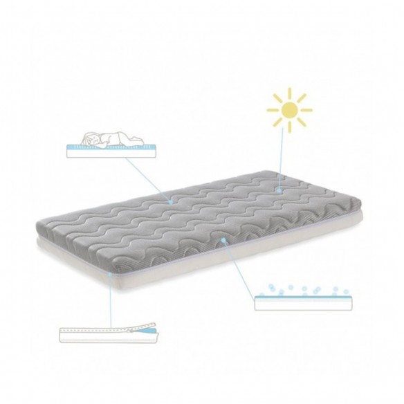 El colchón de cuna Oxsi es el modelo más básico de la gama. Es volteable y ofrece dos caras de descanso que se adaptan a los cambios de temperatura del bebé, tanto en periodos de frío como de calor.