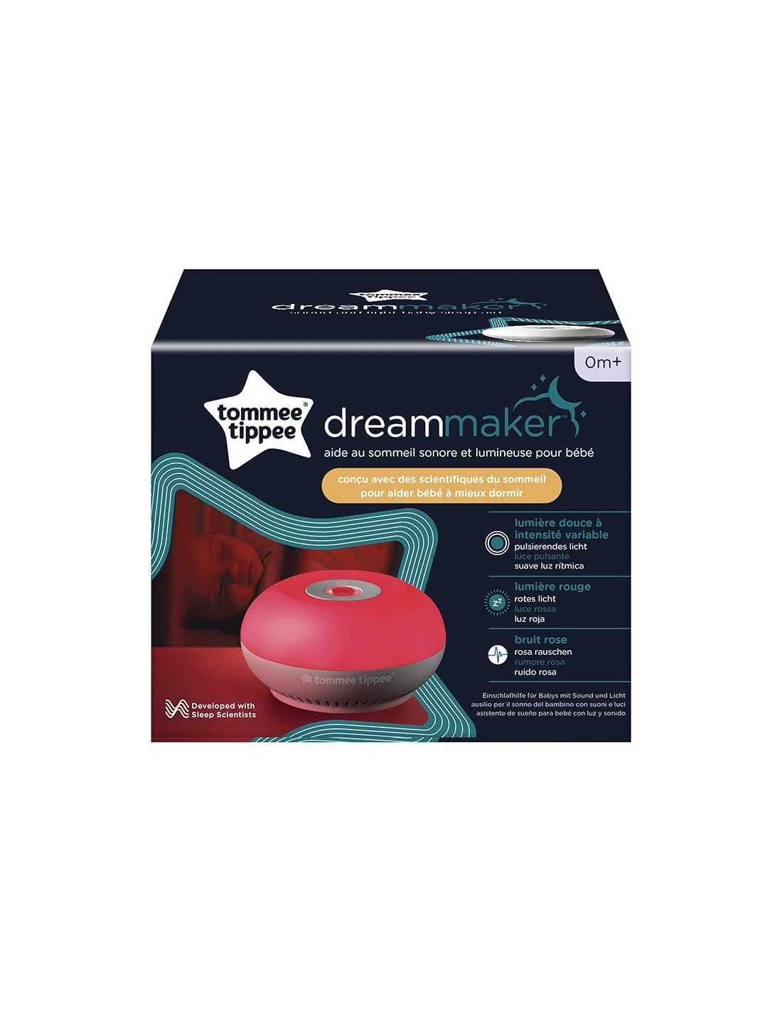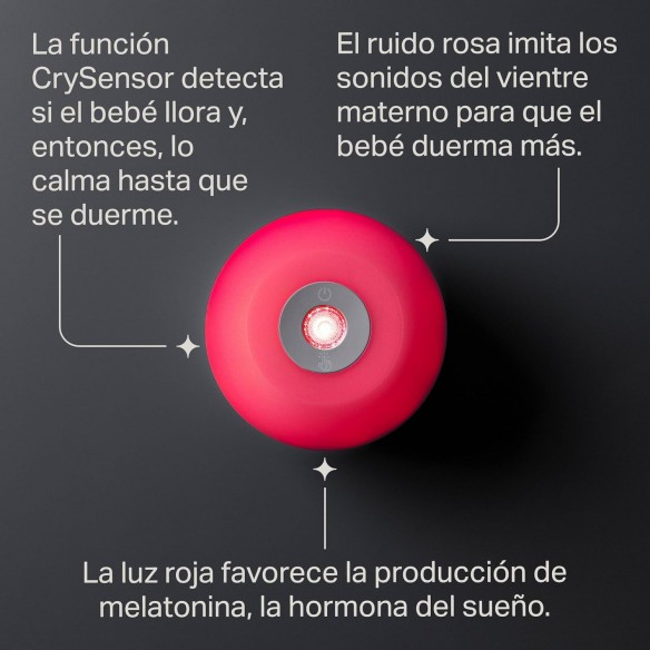 El duermebebés DREAMMAKER, está desarrollado por científicos expertos en sueño, relaja al bebé y ayuda a conseguir un sueño profundo y más duradero. Con luz roja ambiental que fomenta la producción de melatonina, ideal para bebés y además para los adultos. Incluye sensor de llantos, brillo rítmico y ruido rosa que imita los sonidos naturales del vientre de la mamá.