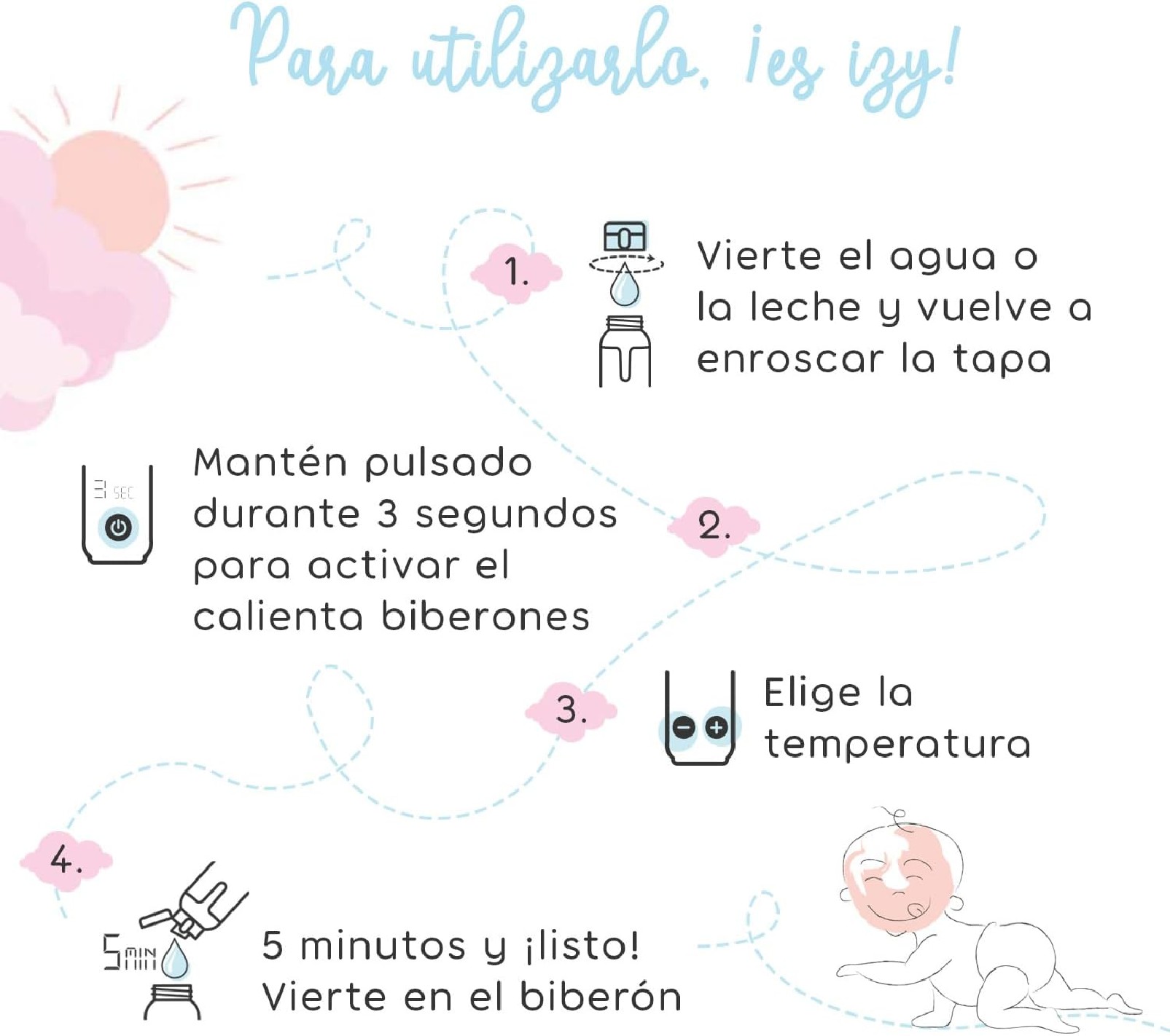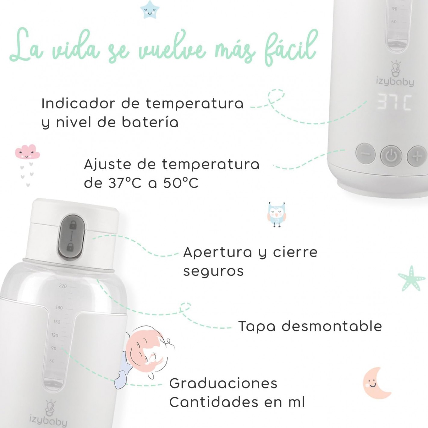 - Apto para leche materna, agua o leche infantil.
