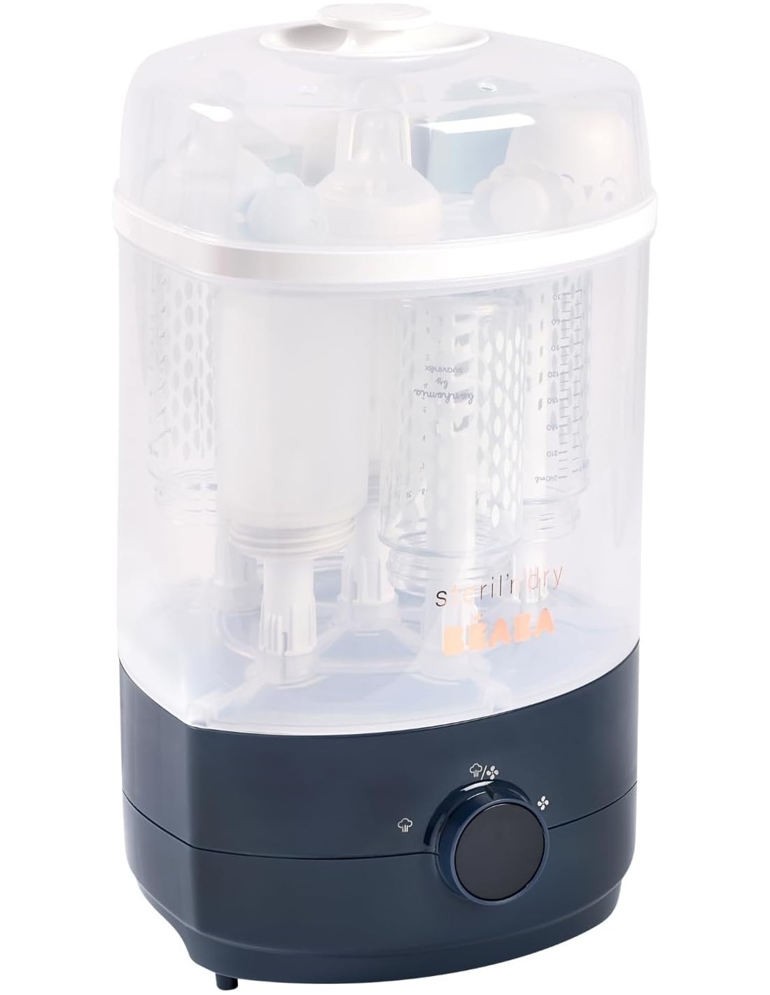 El Steril N Dry de Beaba es eficiente y también tiene una función de secado, por lo que puedes completar el ciclo de esterilización para asegurarte de que los biberones de tu bebé están completamente secos y listos para guardar o usar.
